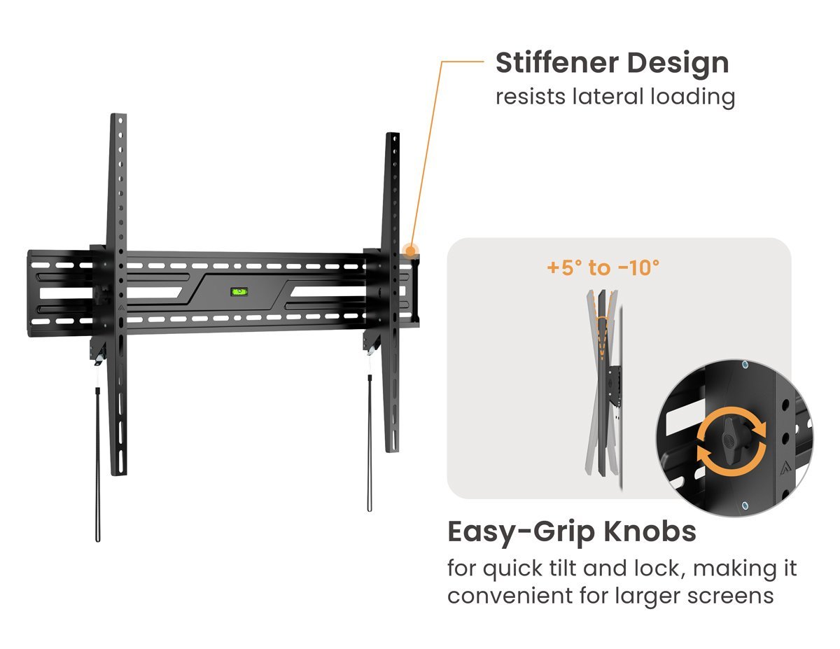 POWERTECH επιτοίχια βάση τηλεόρασης PT-1368, 43-100", έως 75kg, ρυθμιζόμενη κλίση