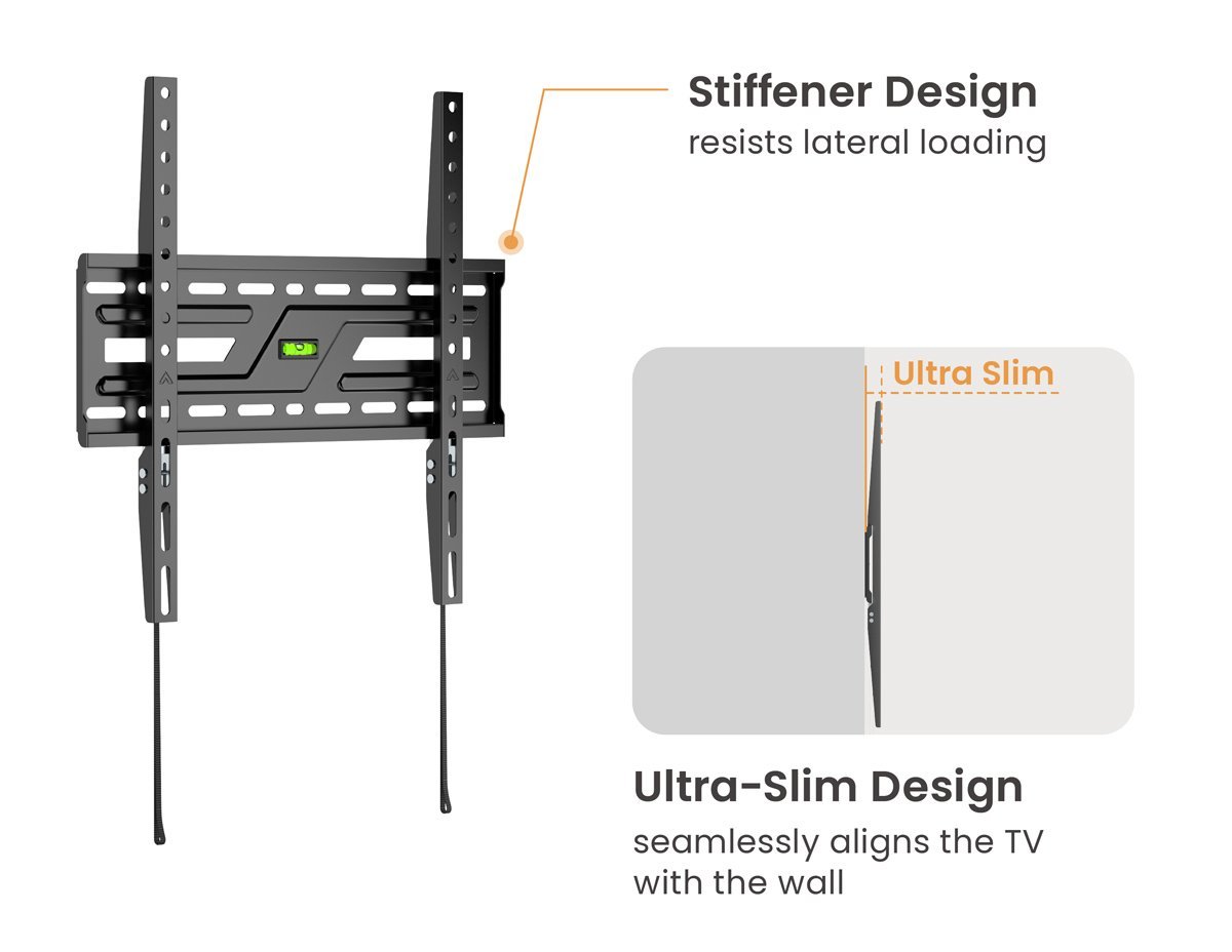 POWERTECH επιτοίχια βάση τηλεόρασης PT-1373, 32-75", έως 75kg, fixed