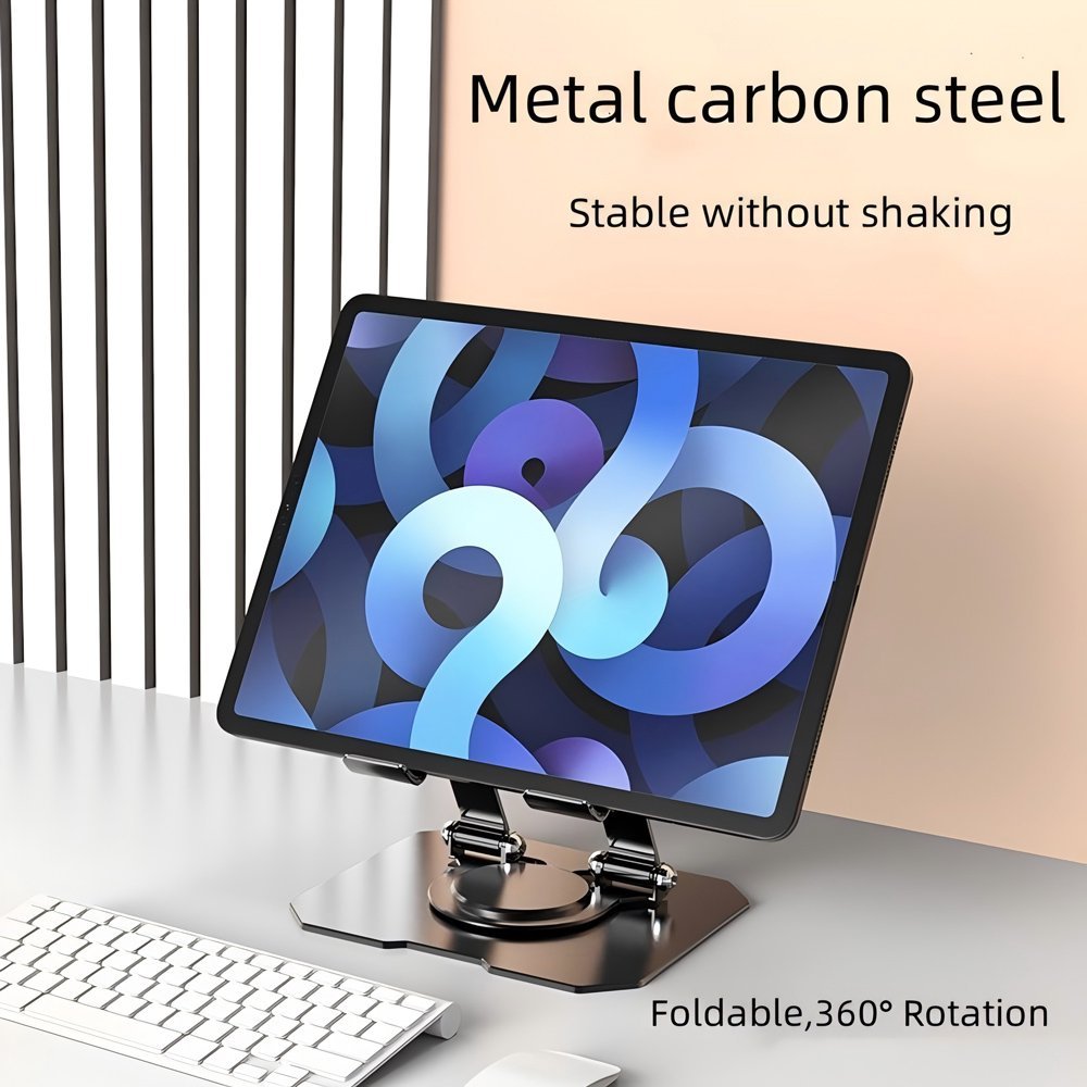 Είναι μεταλλική, περιστρεφόμενη κατά 360° και ρυθμιζόμενη σε ύψος αλλά και κλίση. Είναι foldable και καταλαμβάνει μικρό όγκο όταν είναι κλειστή, για εύκολη μεταφορά σε τσάντα ή σακίδιο.
