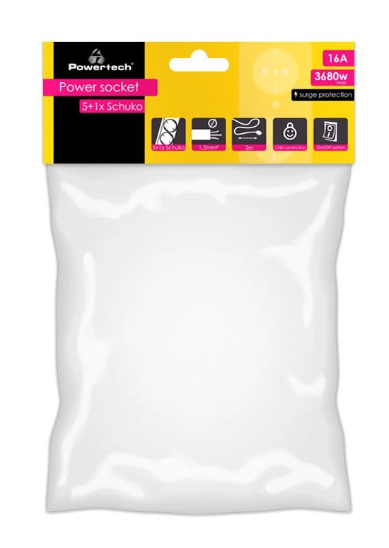 POWERTECH πολύπριζο ασφαλείας PT-994, 5+1 θέσεων schuko, 16A, 2m, μαύρο