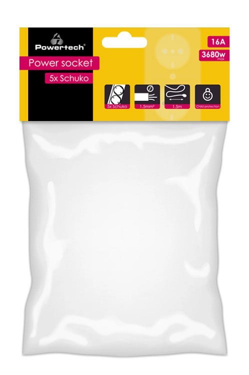 POWERTECH πολύπριζο PT-870, 5x schuko, 16A, 1,5m, μαύρο