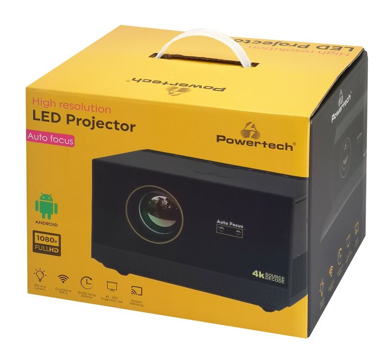 O LED βιντεοπροβολέας της Powertech προσφέρει μοναδικές δυνατότητες. Διαθέτει λυχνία LED με μεγάλη διάρκεια ζωής 30.000 ωρών και ισχυρό ενσωματωμένο ηχείο 5W. Μπορεί να προβάλει εικόνα μεγέθους έως 300" με φωτεινότητα 350 ANSI lumens και Full HD ανάλυση.