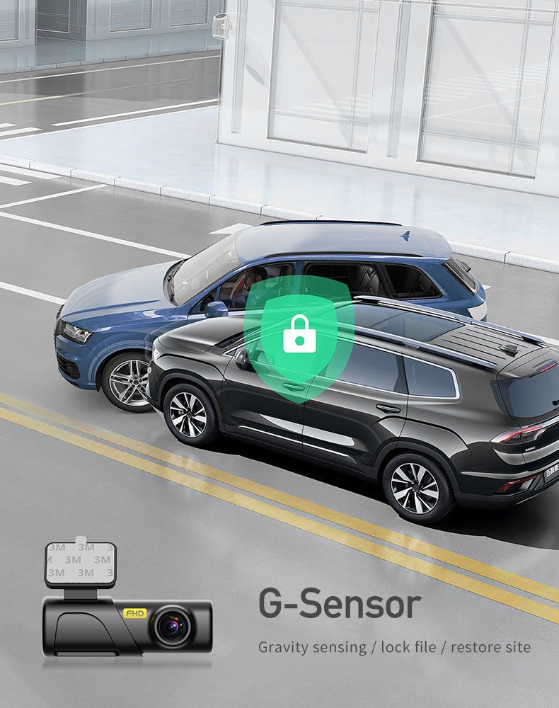 Εξοπλίζεται με αισθητήρα βαρύτητας, χάρη στον όποιο ξεκινά αυτόματα την καταγραφή σε περίπτωση τρακαρίσματος είτε το όχημα βρίσκεται εν κίνηση, είτε είναι σταθμευμένο.