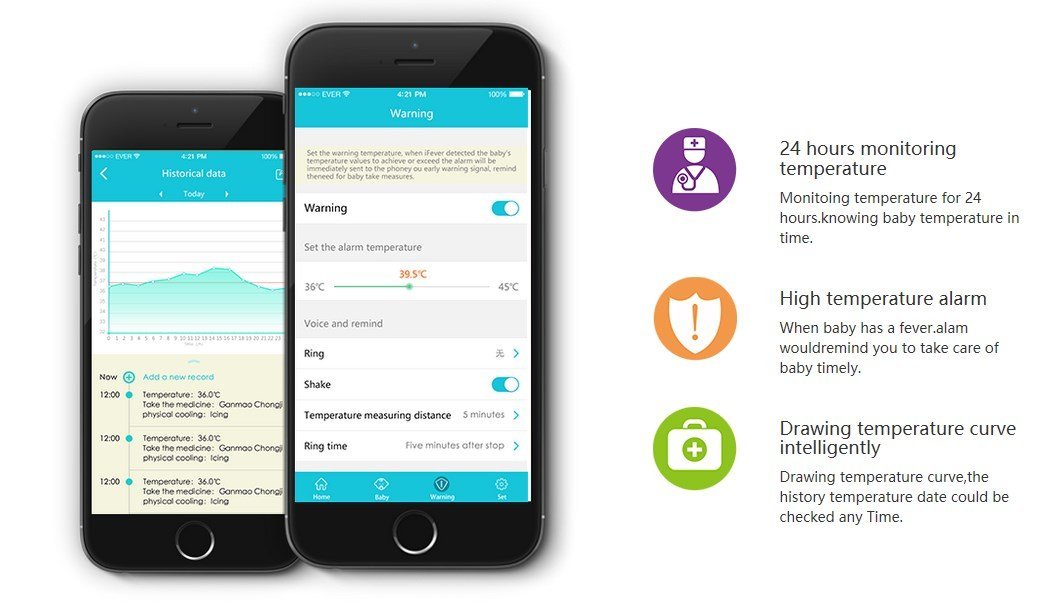 Smart Bluetooth παιδικό θερμόμετρο. Το Μοναδικό με 24ωρη λειτουργία και παρακολούθηση του παιδιού σε πραγματικό χρόνο, με εφαρμογή στο κινητό.