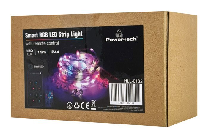 POWERTECH smart LED καλωδιοταινία HLL-0132, RGB, IP44, Bluetooth, 15m