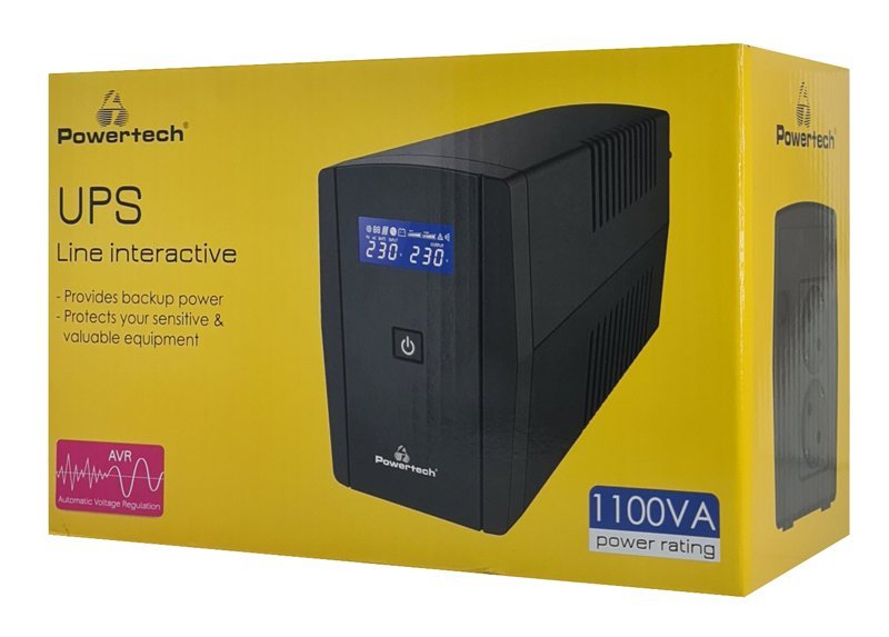 POWERTECH UPS Line Interactive PT-1296 με οθόνη, 1100VA, 660W, 2x Schuko