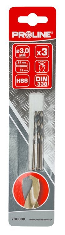 PROLINE σετ τρυπάνια για σίδηρο HSS 79030K, 3mm, DIN 338, 3τμχ