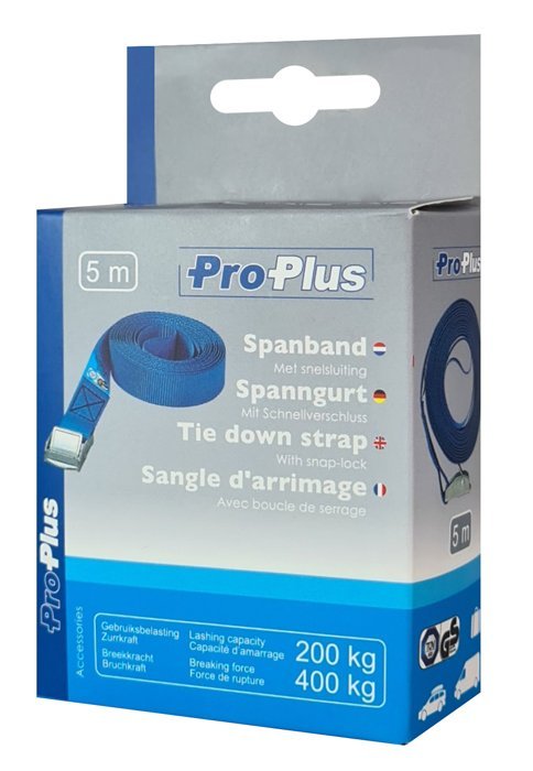 Ιμάντας της PROPLUS με δυνατότητα συγκράτησης 200kg, μήκους 5m. Εξαιρετικά ανθεκτικός με ανοξείδωτη καστάνια στο τέλος του ιμάντα, που διευκολύνει τη σταθεροποίηση του φορτίου, εξασφαλίζοντας άψογη συγκράτηση σε κάθε συνθήκη.