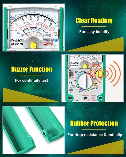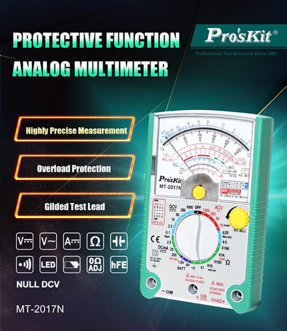 Το MT-2017N από την PROSKIT είναι ένα αναλογικό πολύμετρο που παρέχει μετρήσεις υψηλής ακρίβειας.