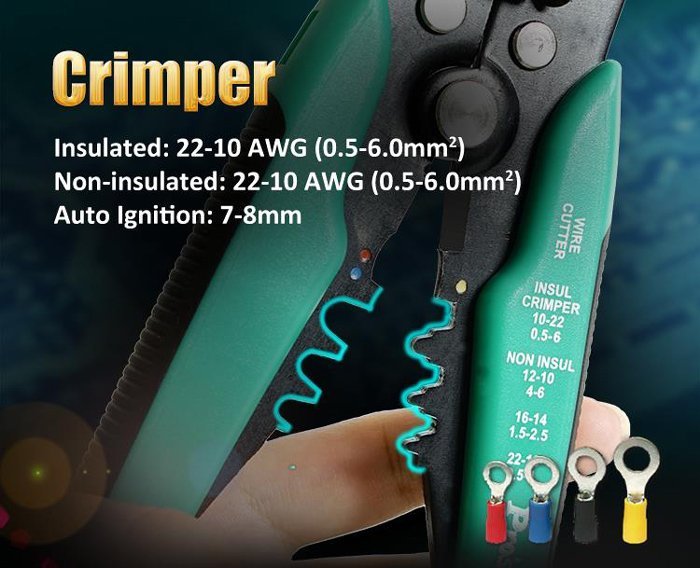 -For insulated terminals AWG 22-10 (0.5-6.0mm²)