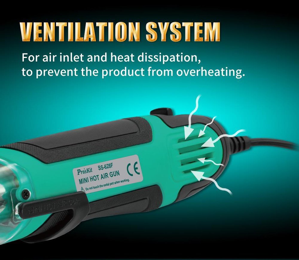 PROSKIT μίνι πιστόλι θερμού αέρα SS-628F, 250/500W, 350/500 °C