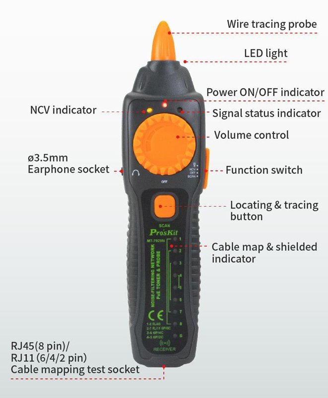 PROSKIT tester καλωδίων δικτύου MT-7029N για RJ45/11/12