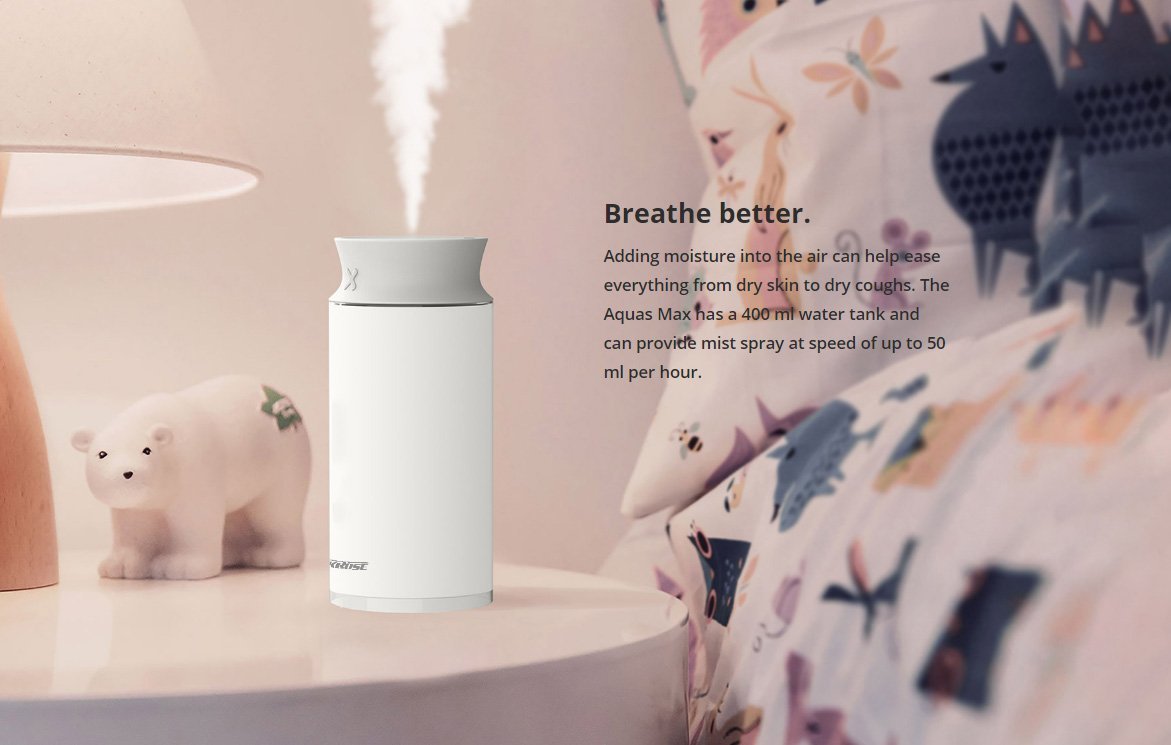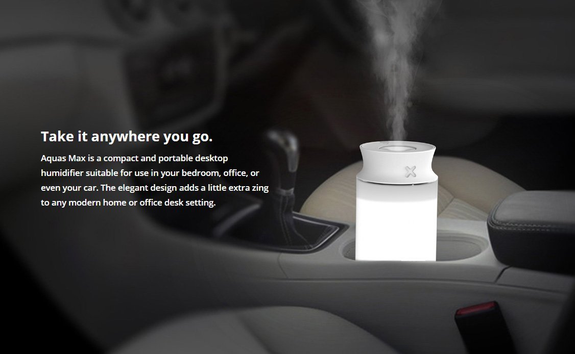 Είναι φωτειζόμενος, προσφέροντας έναν όμορφο τόνο στο χώρο σας και διαθέτει δοχείο χωρητικότητας 380ml. Τροφοδοτείται μέσω θύρας Micro USB, από οποιονδήποτε φορτιστή με έξοδο 5V/1.2A. Διαθέτει τρείς ρυθμίσεις φωτεινότητας και απενεργοποιείται αυτόματα μετά από 4 ώρες λειτουργίας. Δέχεται αρωματικές ταμπλέτες και είναι αθόρυβος.