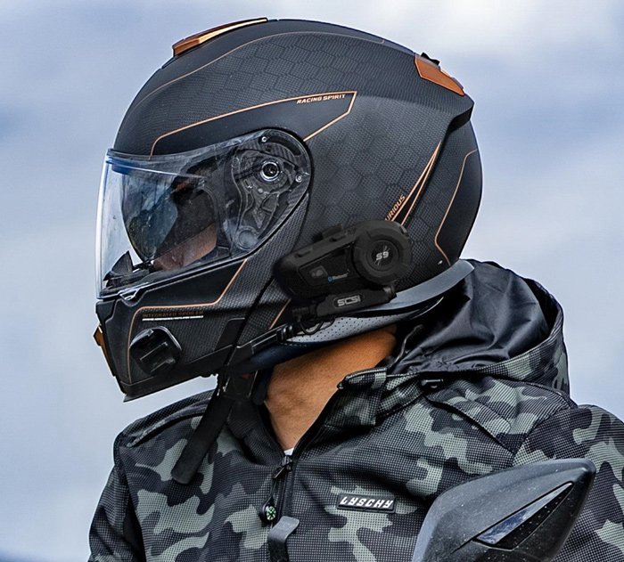 Σύστημα ενδοεπικοινωνίας με Bluetooth για κράνος μηχανής από την SCSETC. Επιτρέπει την ενδοεπικοινωνίας μεταξύ του αναβάτη και του επιβάτη ή μεταξύ έως 6 αναβατών μηχανής σε εμβέλεια έως 500 μέτρα.