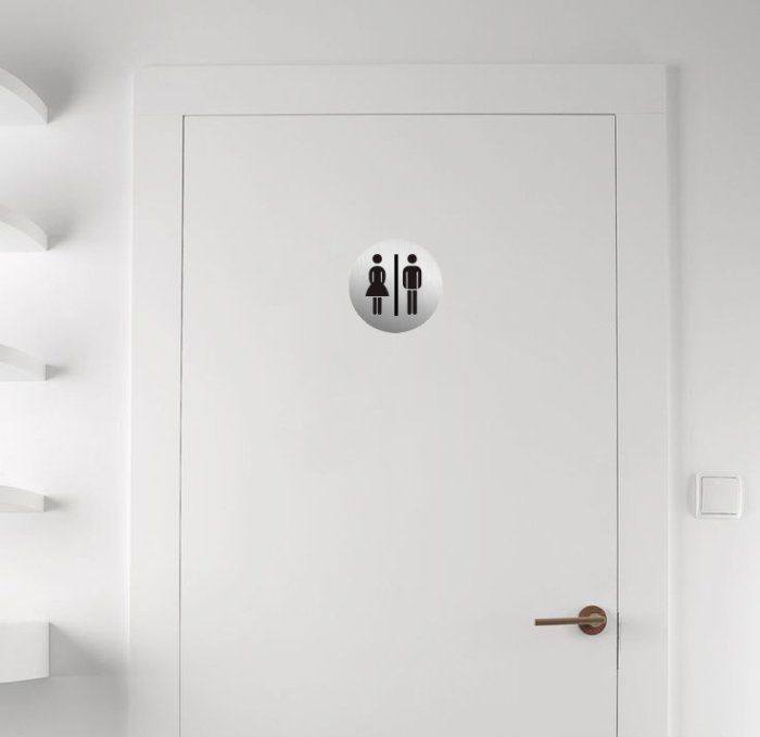 Αυτοκόλλητη πινακίδα πόρτας WC γυναικών/ανδρών, με διάμετρο 75mm.