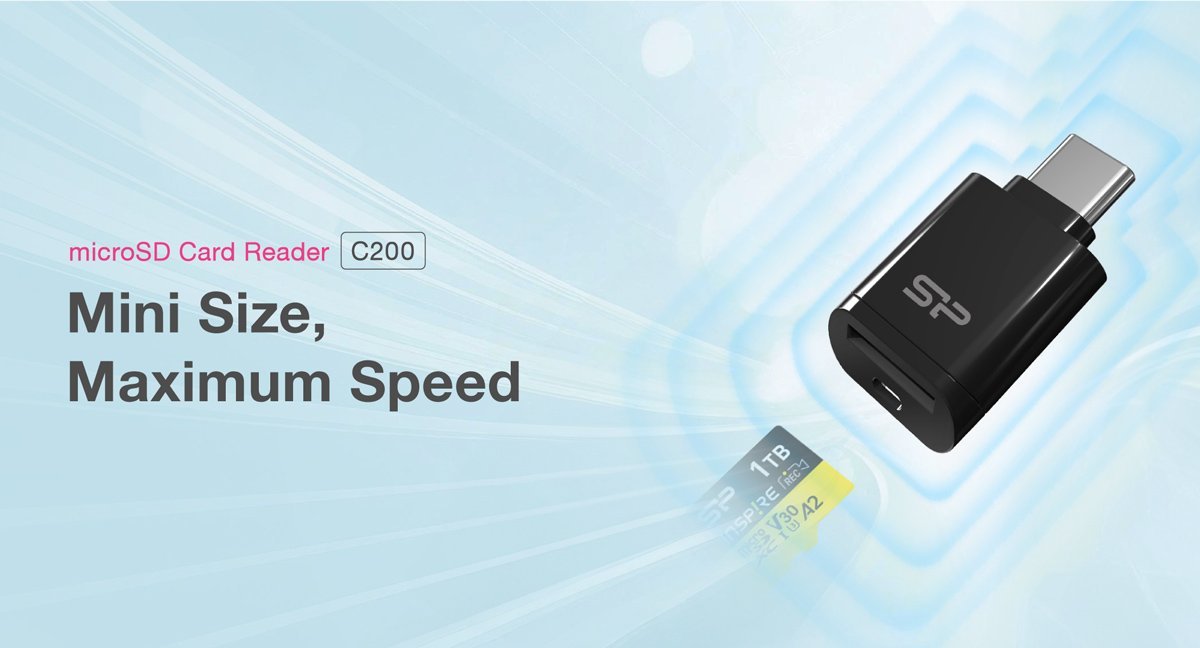 SILICON POWER card reader C200 για micro SD, USB-C, USB 3.2, 180/165MBps, μαύρο