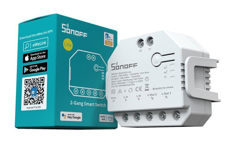 SONOFF smart διακόπτης DUALR3 Lite, 2-Gang, Wi-Fi, 15A, λευκός