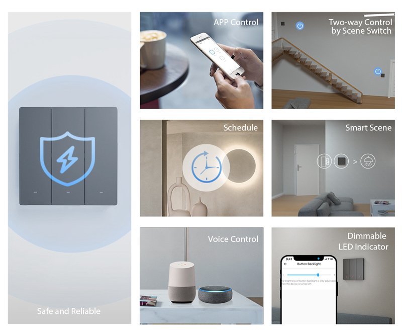 Διαθέτει φυσικούς διακόπτες για χρήση ως συμβατικός διακόπτης και υποστηρίζει λειτουργία χρονοδιακόπτη.