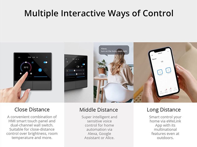 Συνδέεται μέσω Wi-Fi και της εφαρμογής eWeLink με το smartphone σας επιτρέποντας σας να ελέγχετε απομακρυσμένα τις συσκευές σας και υποστηρίζει φωνητικό έλεγχο μέσω Amazon Alexa ή Google Assistant.