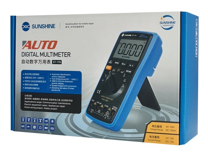 Το αυτόματο ψηφιακό πολύμετρο μπαταρίας DT-17N από την Sunshine παρέχει μετρήσεις υψηλής ακρίβειας. Είναι κατάλληλο για επισκευές ηλεκτρικού εξοπλισμού και συσκευών, εργασίες οικιακής καλωδίωσης κ.α.