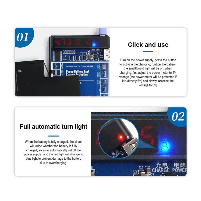 Πλακέτα για φόρτιση, εκκίνηση και έλεγχο τάσης μπαταριών για συσκευές Apple και Android.