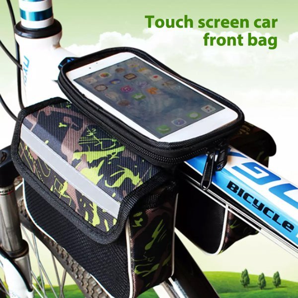 Τσαντάκι ποδηλάτου που προσαρμόζετε στο εμπρός μέρος του ποδηλάτου, πίσω από το τιμόνι. Είναι κατασκευασμένο από υψηλής ποιότητας υλικά και αδιάβροχο. Είναι ιδιαίτερα ευρύχωρο, ιδανικό για την τοποθέτηση γαντιών, γυαλιών και άλλων εργαλείων και εξαρτημάτων του ποδηλάτου. To σετ αποτελείται από δύο διαφορετικά τσαντάκια διαστάσεων 17×13 cm τα οποία τοποθετούνται εκατέρωθεν του κεντρικού άξονα του ποδηλάτου. Το τσαντάκι δένει με ειδικούς ιμάντες με υλικό velcro το οποίο εγγυάται εύκολη τοποθέτηση/αφαίρεση και σταθερότητα κατά την άθληση. Στο επάνω μέρος έχει ειδική θήκη για την τοποθέτηση του κινητού τηλεφώνου. Η θήκη για το τηλέφωνο εξοπλίζεται με αυτοκόλλητα τύπου velcro που μπορεί εύκολα να αφαιρεθεί και παρέχει απόλυτη σταθεροποίηση της συσκευής, ενώ το επάνω, διάφανο μέρος της, είναι συμβατό με touch οθόνες.