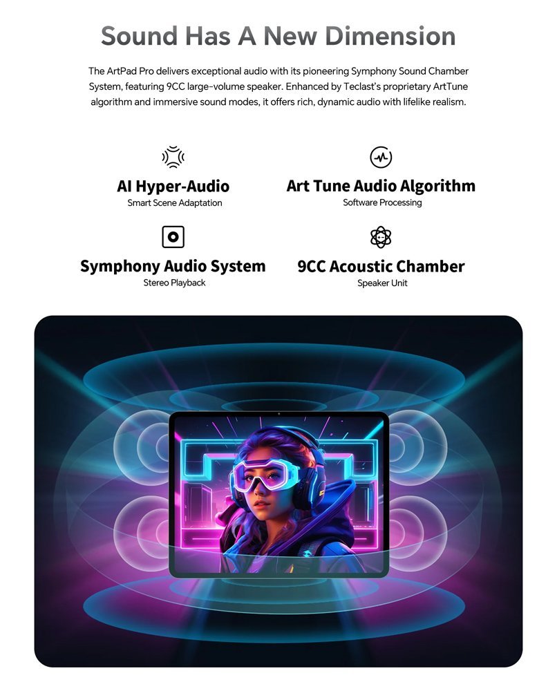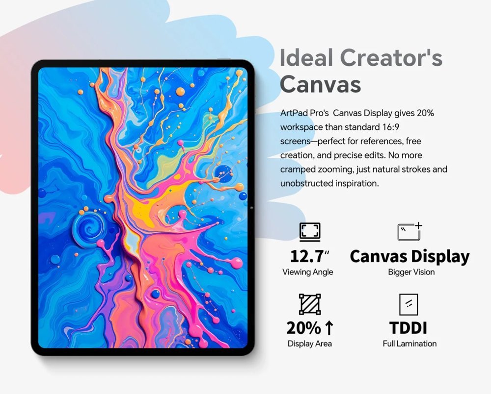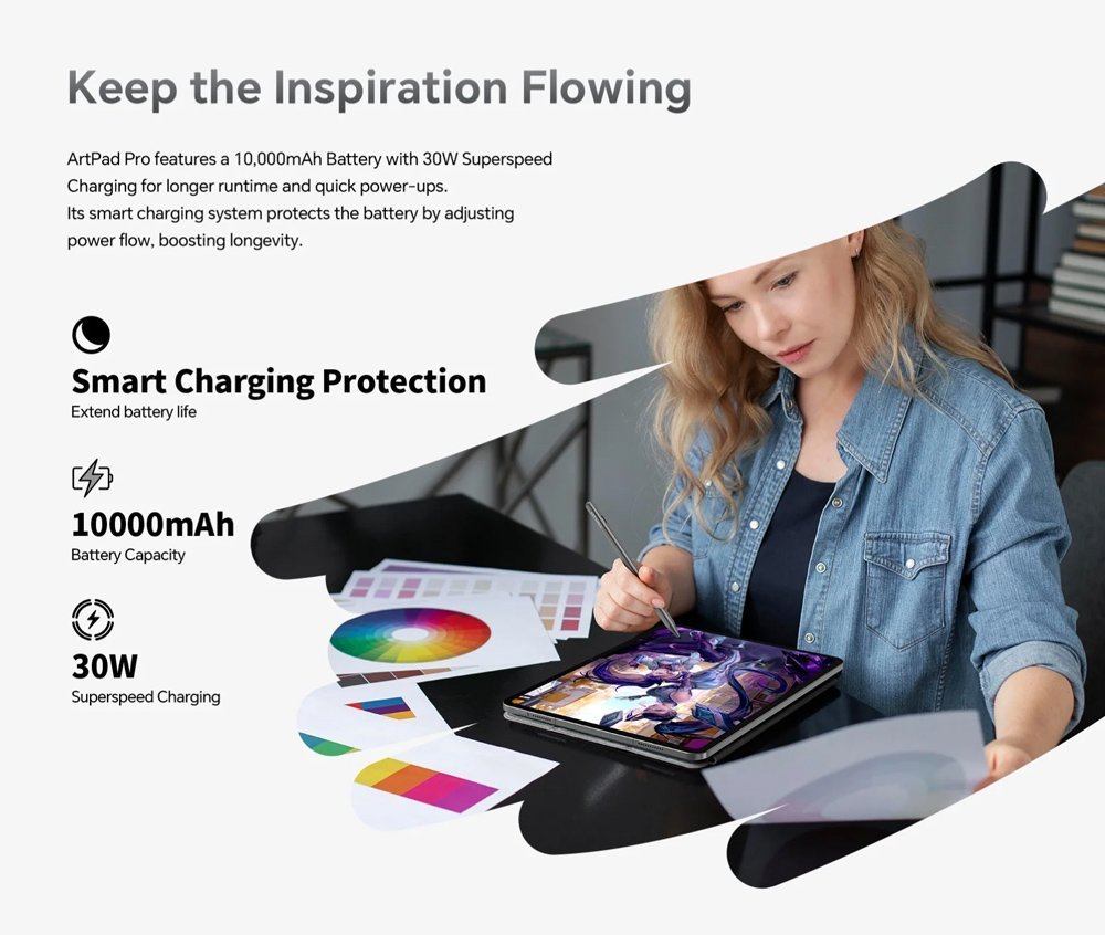 Εξοπλισμένο με επεξεργαστή 8 πυρήνων και λειτουργικό Android 15, το ArtPad Pro προσφέρει υψηλή απόδοση για απρόσκοπτη περιήγηση στο διαδίκτυο, παιχνίδια, πολυμέσα και πολλά άλλα.