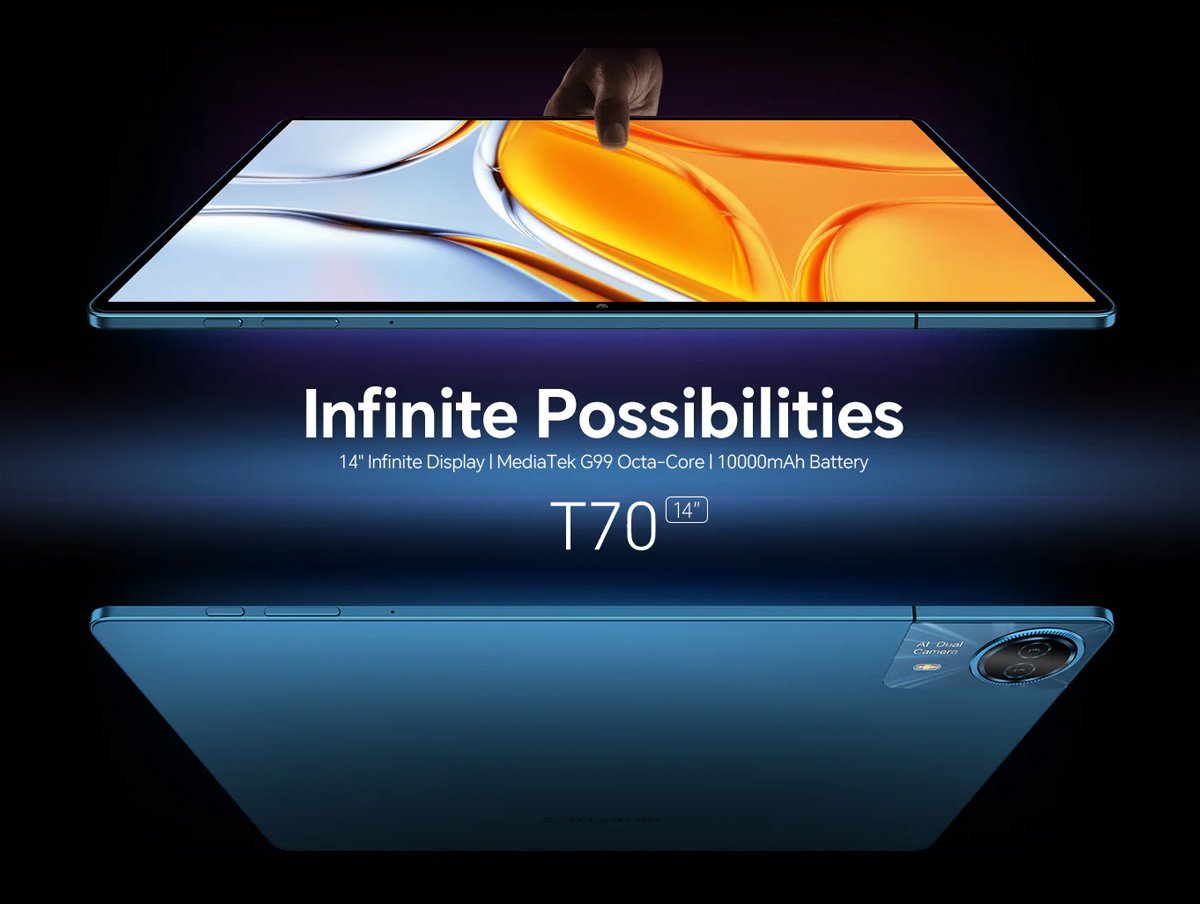 Το tablet T70 της Teclast συνδυάζει εντυπωσιακές επιδόσεις και εκλεπτυσμένο σχεδιασμό. Με μεγάλη οθόνη 14", ευέλικτο σύστημα λειτουργικού Android 14 και ισχυρό οκταπύρηνο επεξεργαστή, το T70 προσφέρει υψηλή απόδοση, για απρόσκοπτη περιήγηση στο διαδίκτυο, παιχνίδια, πολυμέσα και πολλά άλλα.
