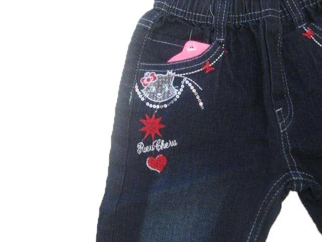 Με ελαστική μέση και κεντημα γατάκι με καρδούλα και στρας.