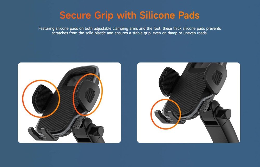 Διαθέτει τηλεσκοπικό βραχίονα ενώ τα πτερύγια που ασφαλίζεται το smartphone είναι επενδυμένα από αντιολισθητικό, μαλακό υλικό.