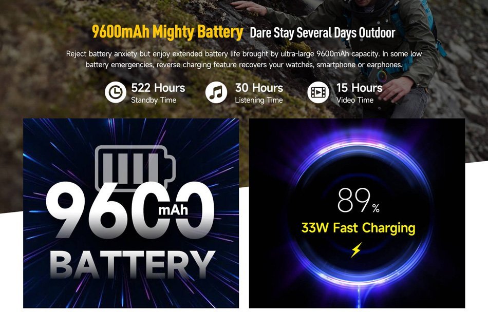 Η μπαταρία χωρητικότητας 9600mAh, προσφέρει μεγάλη αυτονομία, ενώ υποστηρίζει ταχεία φόρτιση 33W.