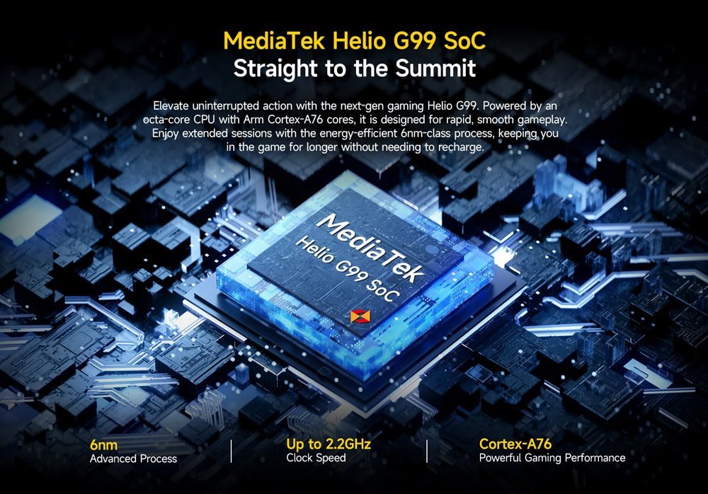 -Επεξεργαστής: MediaTek Helio G99 with 4G, MT6789, Octa Core, up to 2.0GHz