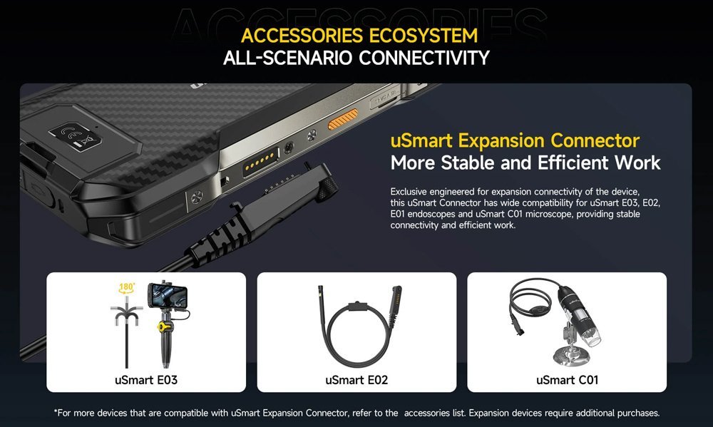 Η συμβατότητα του με uSmart αξεσουάρ (π.χ. ενδοσκοπικές κάμερες) της Ulefone, σας δίνει την δυνατότητα να επεκτείνετε τις λειτουργίες του smartphone.