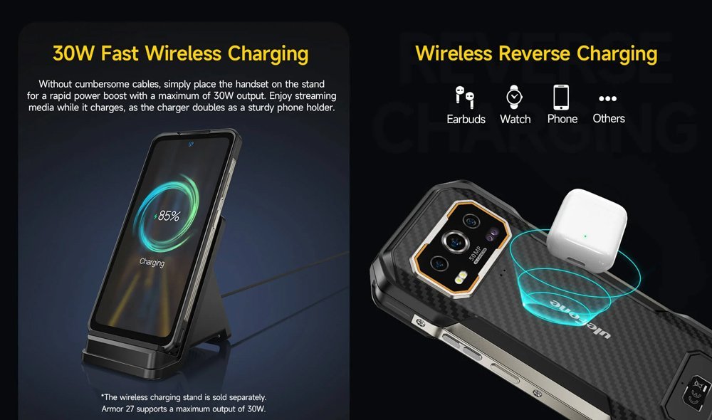 Με μπαταρία 10600mAh, το Armor 27 προσφέρει μεγάλη αυτονομία, που θα σας απαλλάξει από τις συχνές αναζητήσεις τροφοδοσίας. Η φόρτιση του γίνεται με απόδοση 33W ενώ υποστηρίζει και ασύρματη φόρτιση με απόδοση 30W.