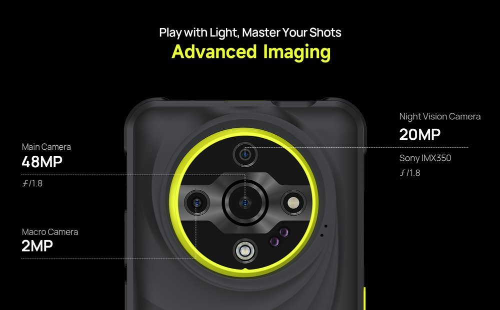 Με κύρια 48MP κάμερα, 20MP κάμερα νυχτερινής όρασης, 2MP macro κάμερα και εμπρόσθια κάμερα 16MP, μπορείτε να τραβήξετε εικόνες υψηλής ανάλυσης, με εξαιρετική σαφήνεια και ζωντανά φυσικά χρώματα ενώ υποστηρίζει και υποβρύχια λήψη φωτογραφιών και βίντεο.