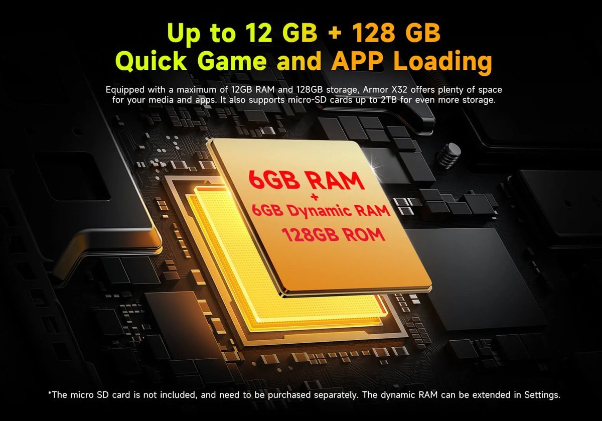 Με μπαταρία 5500mAh, το Armor X32 προσφέρει μεγάλη αυτονομία, που θα σας απαλλάξει από τις συχνές αναζητήσεις τροφοδοσίας.