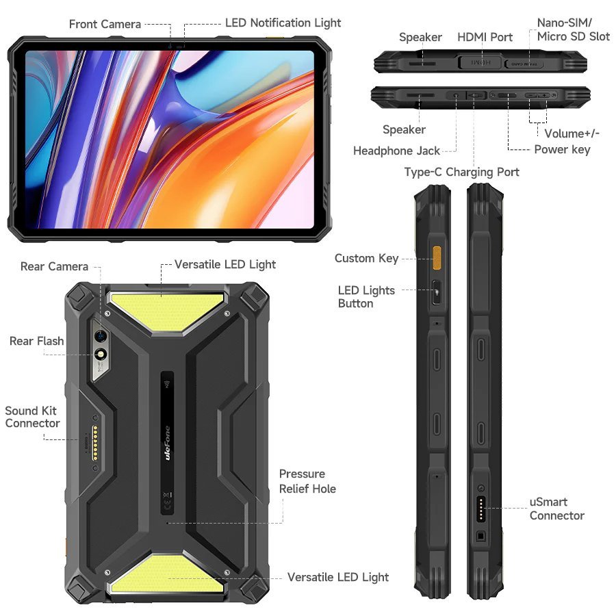 Στιβαρό και αδιάβροχο tablet της ULEFONE, με επιβλητικό design και σκελετό υψηλής ποιότητας, ανθεκτικό στη σκληρή χρήση.