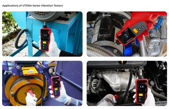 Το tester κραδασμών UT312A είναι φορητή συσκευή σχεδιασμένη για τη μέτρηση της επιτάχυνσης, της ταχύτητας και της μετατόπισης των κραδασμών μηχανολογικού εξοπλισμού.