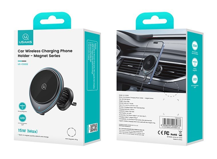 USAMS ασύρματος φορτιστής & βάση αυτοκινήτου US-CD222, 15W, μαύρο