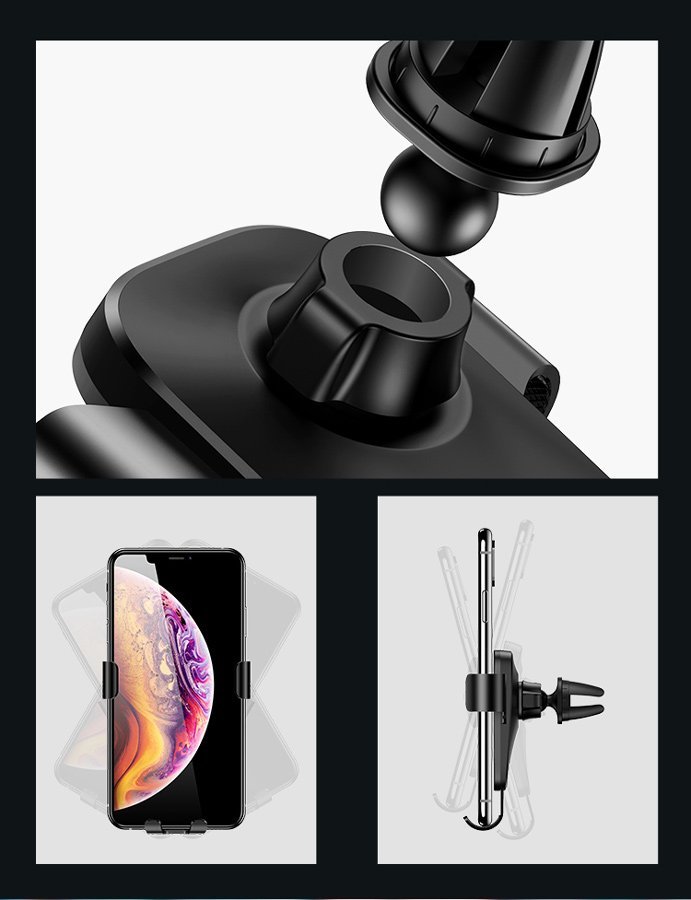 Κατασκευασμένη από ανθεκτικό πλαστικό, η βάση αεραγωγού αυτοκινήτου Gravity ασφαλίζει το smartphone με έναν έξυπνο μηχανισμό συγκράτησης, ο οποίος λειτουργεί με το βάρος της ίδιας της συσκευής. Τα μετακινούμενα πτερύγια της είναι μεταλλικά και επενδυμένα από αντιολισθητικό, μαλακό υλικό, ώστε να βελτιώνονεται το επίπεδο συγκράτησης, αποτρέποντας τις γρατσουνιές στη συσκευή από την χρήση.