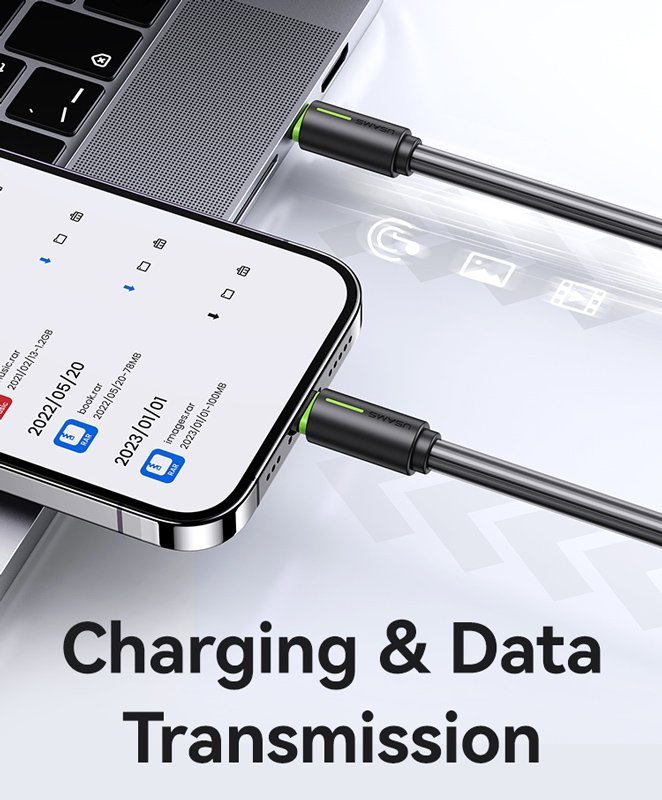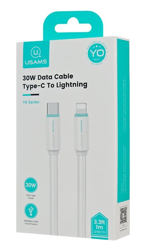 Καλώδιο φόρτισης και μεταφοράς δεδομένων Lightning σε USB-C της Usams. Υποστηρίζει φόρτιση με απόδοση έως 30W και μεταφορά δεδομένων με ταχύτητα έως 480Mbps.