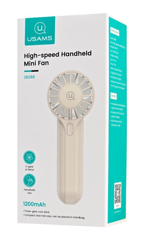USAMS φορητός ανεμιστήρας ZB288 με 3 ταχύτητες, 1200mAh, λευκός
