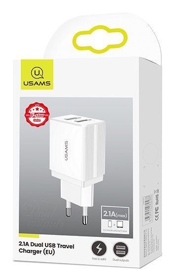 USAMS φορτιστής τοίχου T24 US-CC090, 2x USB, 2.1A, λευκός