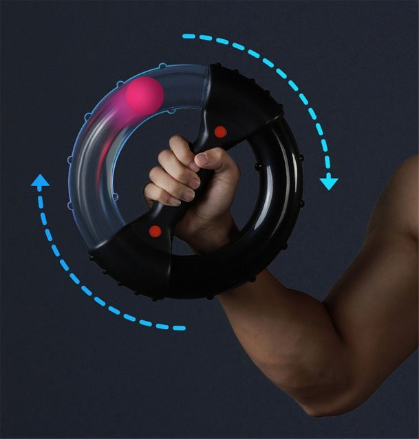 Αυτό το όργανο εκγύμνασης χεριών της Yunmai προσφέρει έναν ευχάριστο τρόπο να γυμνάσετε τα χέρια σας, χωρίς ιδιαίτερο κόπο! Έχει το σχήμα ενός τιμονιού και στο εσωτερικό του έχει μια μπάλα. Σκοπός είναι να κινείται τα χέρια σας με τέτοιον τρόπο ώστε να διατηρείτε την μπάλα σε συνεχή κίνηση. Η μπάλα έχει ένα σχετικό βάρος το οποίο λόγω της φυγόκεντρου πολλαπλασιάζει την ένταση που ασκείται στο χέρι σας, με αποτέλεσμα να γυμνάζονται και να δυναμώνουν οι μύες σας!