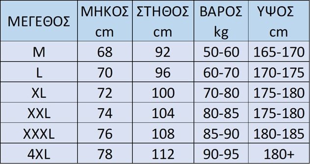 μέγεθος M,L,XL,XXL,XXXL,4XL