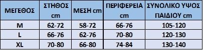 Μεγέθη M-XL ή 105-140 ύψος